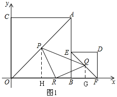 点评 本题是四边形的综合题,考查了正方形的性质、三角形的中位线的性质、全等三角形的性质和判定、勾股定理、图形和坐标特点,难度适中,第3问证明△PHR≌△RGQ是关键,还要注意第4问分类讨论,不要丢解