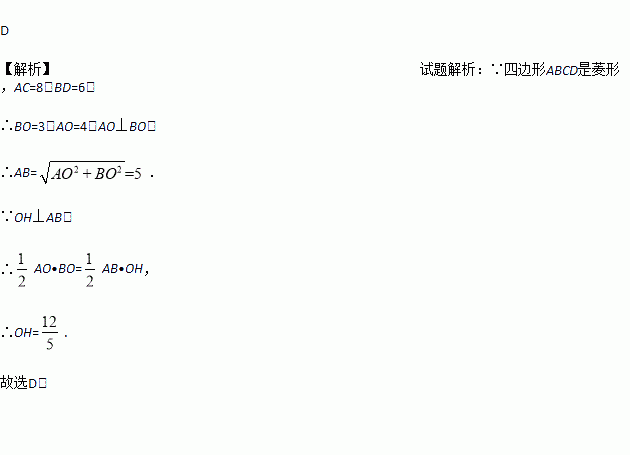 如图,菱形ABCD的对角线AC、BD相交于点O,AC=8,BD=6,过点O作OH⊥AB,垂足为H,则点O到边AB的距离OH等于( )