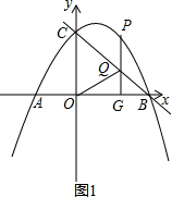 (2)延长PQ交x轴于点G,如图1,设点P的横坐标为t,可求得PQ=$-\frac{2}{9}{t^2}+2t$.易证△BGQ∽△BOC,从而可求得BQ=$\frac{\sqrt{13}}{3}$(9-t),然后根据条件PQ=$\frac{\sqrt{13}}{3}$QB得到关于t的方程,解这个方程,就可解决问题;