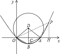 ⊙O经过坐标原点,且与x轴交于点A、DC⊥x轴于点C,且与⊙D交于点B,已知⊙D的半径为2