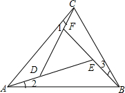 如图,在△ABC中,∠CAB=45°,∠1=∠2=∠3