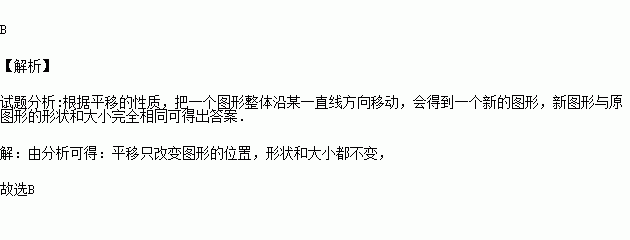 A.一个图形平移后,形状和大小都改变