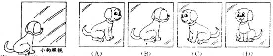 一只小狗正在平面镜前欣赏自己的全身像(如下图),此时,它所看到的全身像是( )