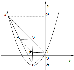 (2)△ABC的形状是直角三角形,分别作BG垂直于y轴,CH垂直于y轴,依次求∠BAG=45°,∠CAH=45°,进而得到∠BAC=90°;