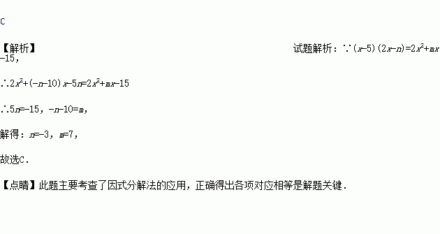 若(x-5)(2x-n)=2x2+mx-15,则m、n的值分别是( )
