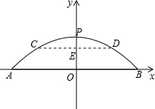 分析:(1)以AB所在直线为x轴,过P点⊥x轴的直线为y轴建立平面直角坐标系,表示出点P和点B的坐标,利用待定系数法确定二次函数的解析式即可;