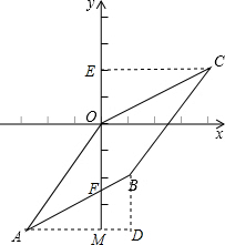 分析 首先过点C作CE⊥y轴于点E,过点A作AM⊥y轴于点M,过点B作BD∥y轴,交AM的延长线于点D,设AB交y轴于点F,易求得AD与BD的长,然后证得△EOC≌△DBA,根据全等三角形的对应边相等,即可求得CE与OE的长,继而求得答案.