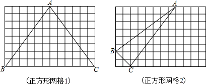 (1)在正方形网格1、正方形网格2中,分别画等腰三角形ABC,使得它们满足下列要求: