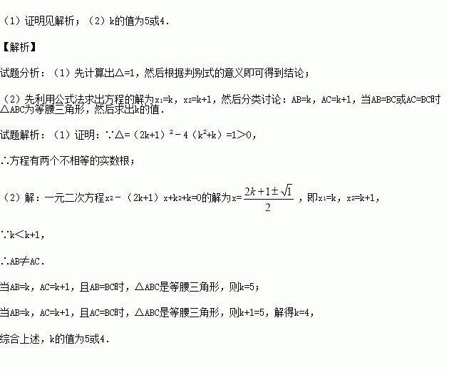已知关于x的一元二次方程x2﹣(2k+1)x+k2+k=0.