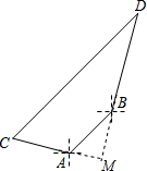 分析 延长CA,DB交于点M,根据已知条件得:∠BAM=60°,∠ABM=30°,于是得到△CDM是直角三角形,设缉私船最少要花t小时追上走私船,根据勾股定理列方程即可求得答案.