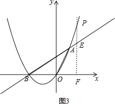 则E(x,$\frac{\sqrt{3}}{3}$x+$\frac{2\sqrt{3}}{3}$),P(x,$\frac{\sqrt{3}}{3}$x2+$\frac{2\sqrt{3}}{3}$x),如图3,![]()
