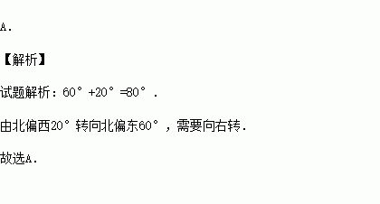 A.右转80° B.左转80° C.右转100° D.左转100°