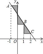 如图,点A、B、C在一次函数y=-2x+m的图象上,它们的横坐标依次为-1、1、2,分别过这些点作x轴与y轴的垂线,则图中阴影部分的面积的和是________.