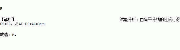 如图,在△ABC中,∠ACB=90°,BE平分∠ABC,DE⊥AB于D,如果AC=3cm,那么AE+DE等于( )
