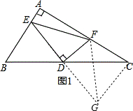 分析:(1)延长ED至点G,使得EG=DE,连接FG,CG,易证EF=FG和△BDE≌△CDG,可得BE=CG,∠DCG=∠DBE,即可求得∠FCG=90°,根据勾股定理即可解题;