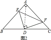 (2)如图2,若AB=AC,BE=12,CF=5,求△DEF的面积.