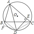 分析 作DF⊥AB于F,如图,根据圆周角定理由$\widehat{BD}$=$\widehat{CD}$得∠BAD=∠CADDB=DC,再根据角平分线的性质得DF=DE,接着利用“HL”证明Rt△DBF≌Rt△DCE得BF=CE,证明Rt△DAF≌Rt△DAE得AF=AE,则有AB+BF=AC-CE,然后计算CE的长.