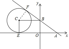 (2)连接CF,利用切线的性质得到CF垂直于AF,进而得到一对直角相等,再利用两直线平行得到一对同位角相等,根据矩形的对边相等及圆的半径相等得到CF=OB,利用AAS得到三角形BCF与三角形AOB全等,得到CB=AB,在直角三角形AOB中,利用勾股定理求出AB的长,确定出BC的长,根据C为第二象限角,确定出C的坐标即可;