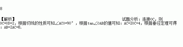 如图,以点O为圆心的两个圆中,大圆的弦AB切小圆于点C,OA交小圆于点D,若OD=2,tan∠OAB=