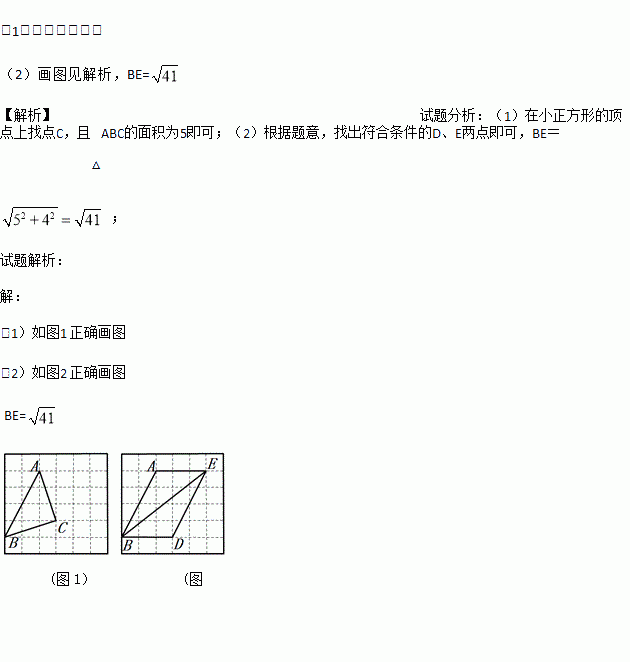 (l)请在图l中画一个△ABC,使得△ABC为轴对称图形,点C在小正方形的顶点上,且△ABC的面积为5;