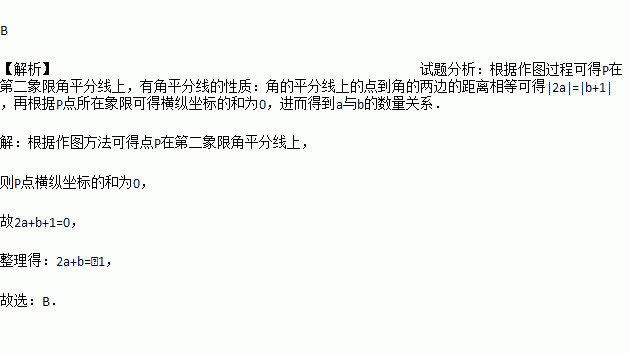 MN的长为半径画弧,两弧在第二象限交于点P.若点P的坐标为(2a,b+1),则a与b的数量关系为( )