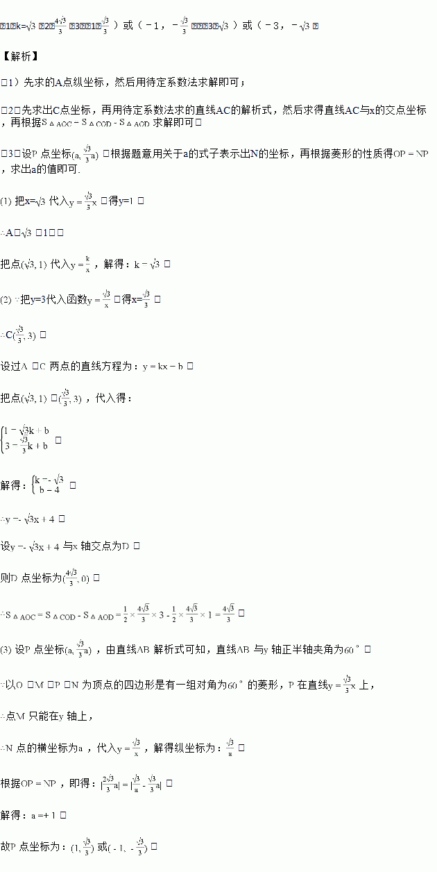 (3)在坐标轴上有一点M,在直线AB上有一点P,在双曲线y=