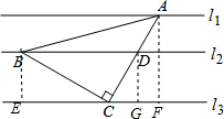 解:分别过点A、B、D作AF⊥l3,BE⊥l3,DG⊥l3,