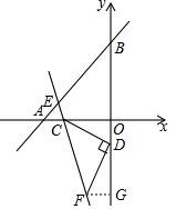 (2)过F作FG⊥y轴于点G,可证得△CDF为等腰直角三角形,则可证得△CDO≌△DFG,则可求得FG和OG的长,可求得F点坐标;