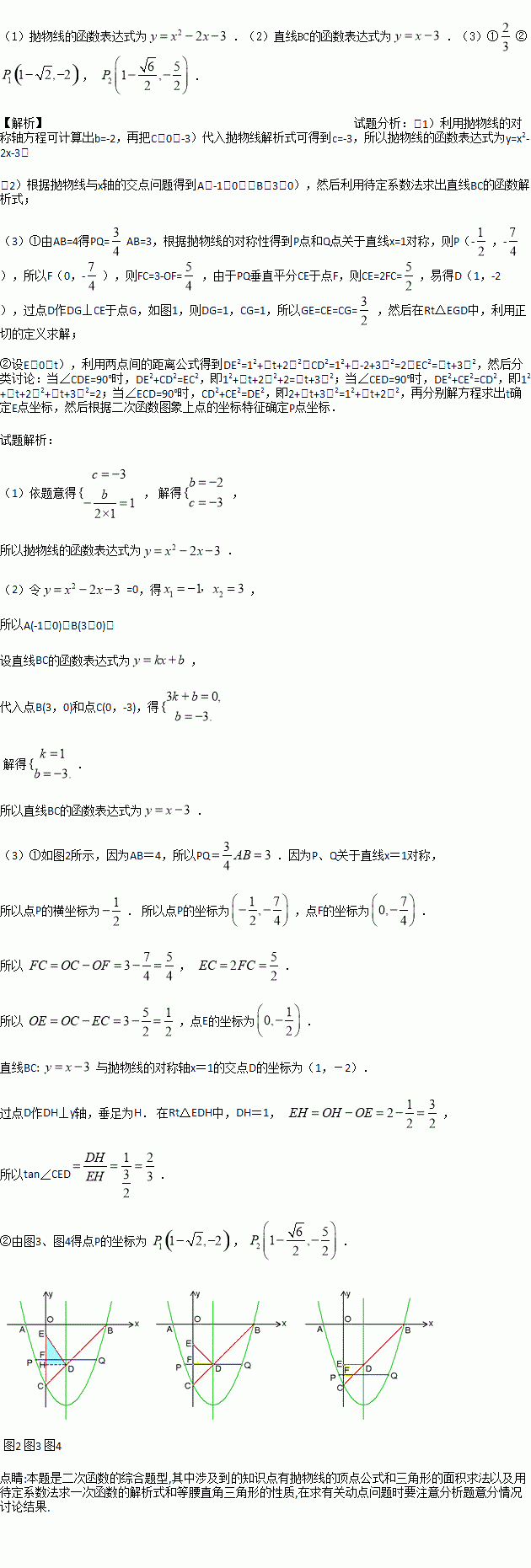 (3)点E为y轴上一动点,CE的垂直平分线交CE于点F,交抛物线于P、Q两点,且点P在第三象限.