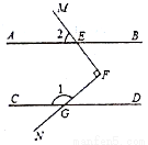 AB//CD,MF⊥NF于F,MF交AB于点E,NF交CD于点G,∠1=140°,则∠2=________度.