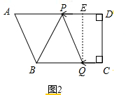 当PQ=BQ时,如图2,作QE⊥AD于E,