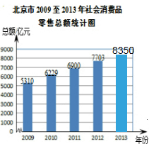 £¨2£©±±¾©ÊÐ2013ÄêµÄÉç»áÏû·ÑÆ·ÁãÊÛ×ܶîԼΪ£º1670¡Â20%=8350ÒÚÔª£¬