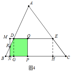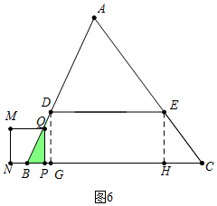 分析 (1)分别过D、E作DG⊥BC,EH⊥BC,垂足分别为G、H,在△EHC中可求得EH,CH,在Rt△DBG中可求得BD,当D和M重合时可知正方形的边长为DG,可求得CP的长,求得t;