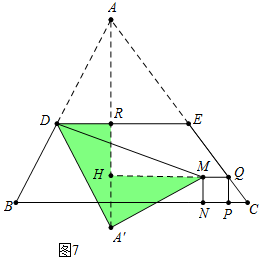 (3)①如图7中,当∠DA′M=90°时,作MH⊥AA′于H,AA′交DE于R.![]()