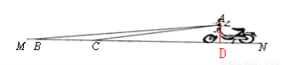 某型号的电动车如下图所示,它的大灯A射出的光线AB, AC 与地面MN 所夹的锐角分别为8°和10°,大灯A离地面的距离为1m,则该车大灯照亮地面的宽度BC是 m.(参考数据