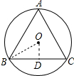 分析 连接OB,作OD⊥BC于D,则∠ODB=90°,由等边三角形的性质得出∠OBD=30°,BD=$\frac{1}{2}$BC,由三角函数求出OD的数值,再由含30°角的直角三角形的性质得出OB=2OD,即可得出结果.