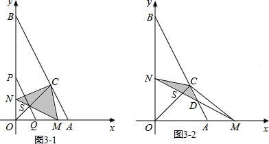 ¢Úµ±Öغϲ¿·ÖµÄÃæ»ýµÈÓÚ¡÷CMNµÄÃæ»ýʱ£¬¡÷MNCÓë¡÷OABÖØµþ²¿·ÖͼÐεÄÃæ»ý±»OC·Ö³É1£º2Á½²¿·Ö£¬¼´OM¡Ü2ʱ£¬µ±S¡÷CNS=2S¡÷CSDʱ£¬NS=2SD£¬