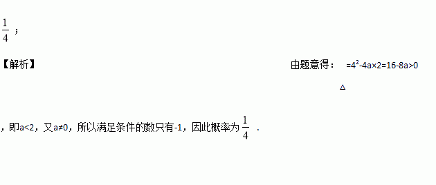 在分别写有数字-1,0,2,3的四张卡片中随机抽取一张,将抽得的数字作为方程ax2+4x+2=0的系数a,求使该方程有两个不相等实数根的概率是____________ .