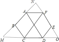 如图,延长BA和EF交于N,延长CD和FE交于O,延长AB和DC交于M,![]()