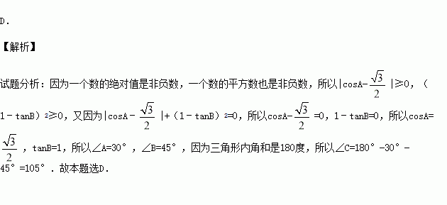 |+(1﹣tanB)2=0,则∠C的大小是( ).