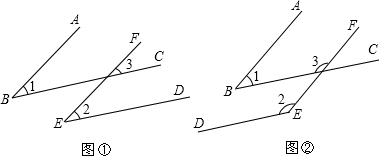 (2)如图②,AB∥EF,BC∥DE,则∠1与∠2的数量关系是