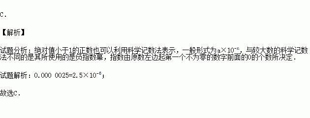 PM2.5是指大气中直径小于或等于0.0000025米的颗粒物,将0.0000025用科学记数法表示为