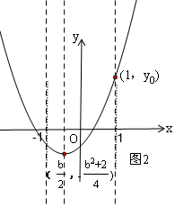②当-1≤$-\frac{b}{2}$≤0,即0≤b≤2时,如图2,在x轴上方与x轴距离最大的点是(1,yo),