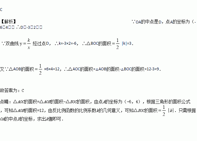 经过直角三角形OAB斜边OA的中点D,且与直角边AB相交于点C.若点A的坐标为(