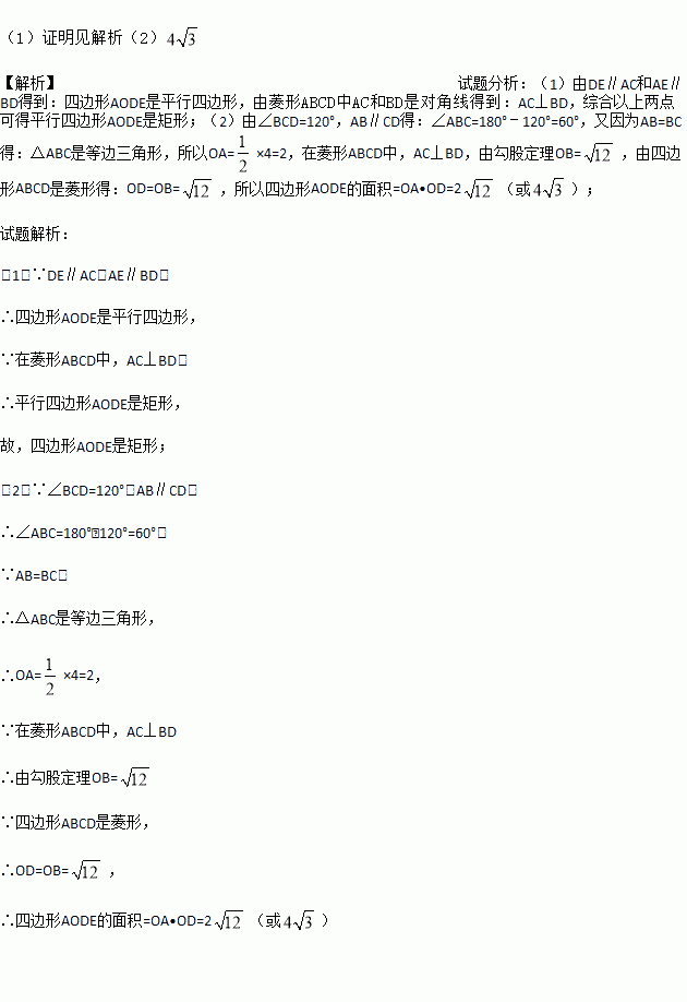 (2)若AB=4,∠BCD=120°,求四边形AODE的面积.