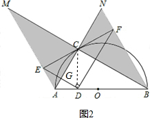 如图,点C在以AB为直径的半圆上,AB=10,∠CBA=30°,点D在线段AB上运动,点E与点D关于AC对称,DF⊥DE于点D,并交EC的延长线于点F,当点D从点A运动到点B时,线段EF扫过的面积是