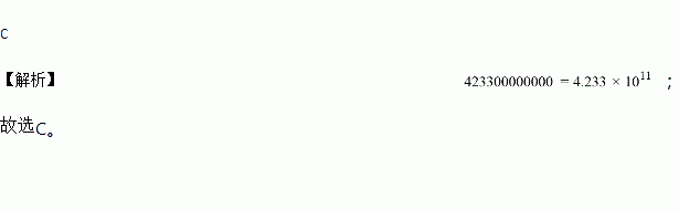 2017年消费者的旅游消费不断升级。根据国家旅游局数据中心综合测算,2017年春节期间,全国共接待游客3.44亿人次,实现旅游总收入4233亿元。将4233亿用科学计数法表示( )