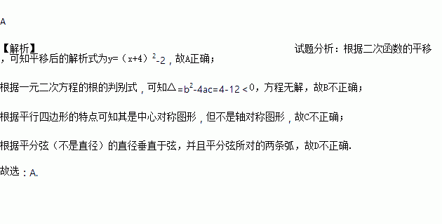 向左平移4个单位后,再向下平移2个单位,则此时抛物线的解析式是