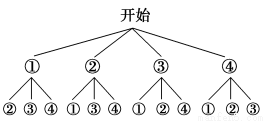 如图,4张背面完全相同的纸牌(用①、②、③、④表示),在纸牌的正面分别写有四个不同的条件,小明将这4张纸牌背面朝上洗匀后,先随机摸出一张(不放回),再随机摸出一张.