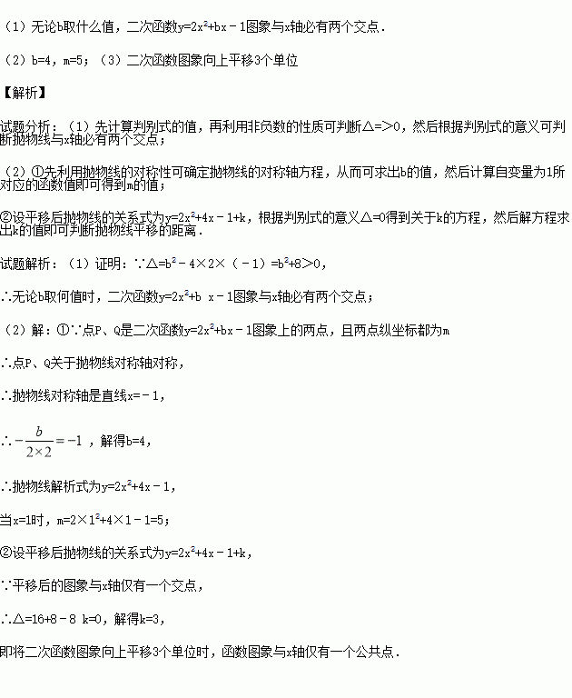 (1)求证:无论b取什么值,二次函数y=2x2+bx﹣1图象与x轴必有两个交点.